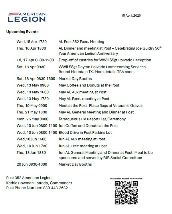 - Dinner and a meeting held every 3rd Thursday of the month, 1830hrs.